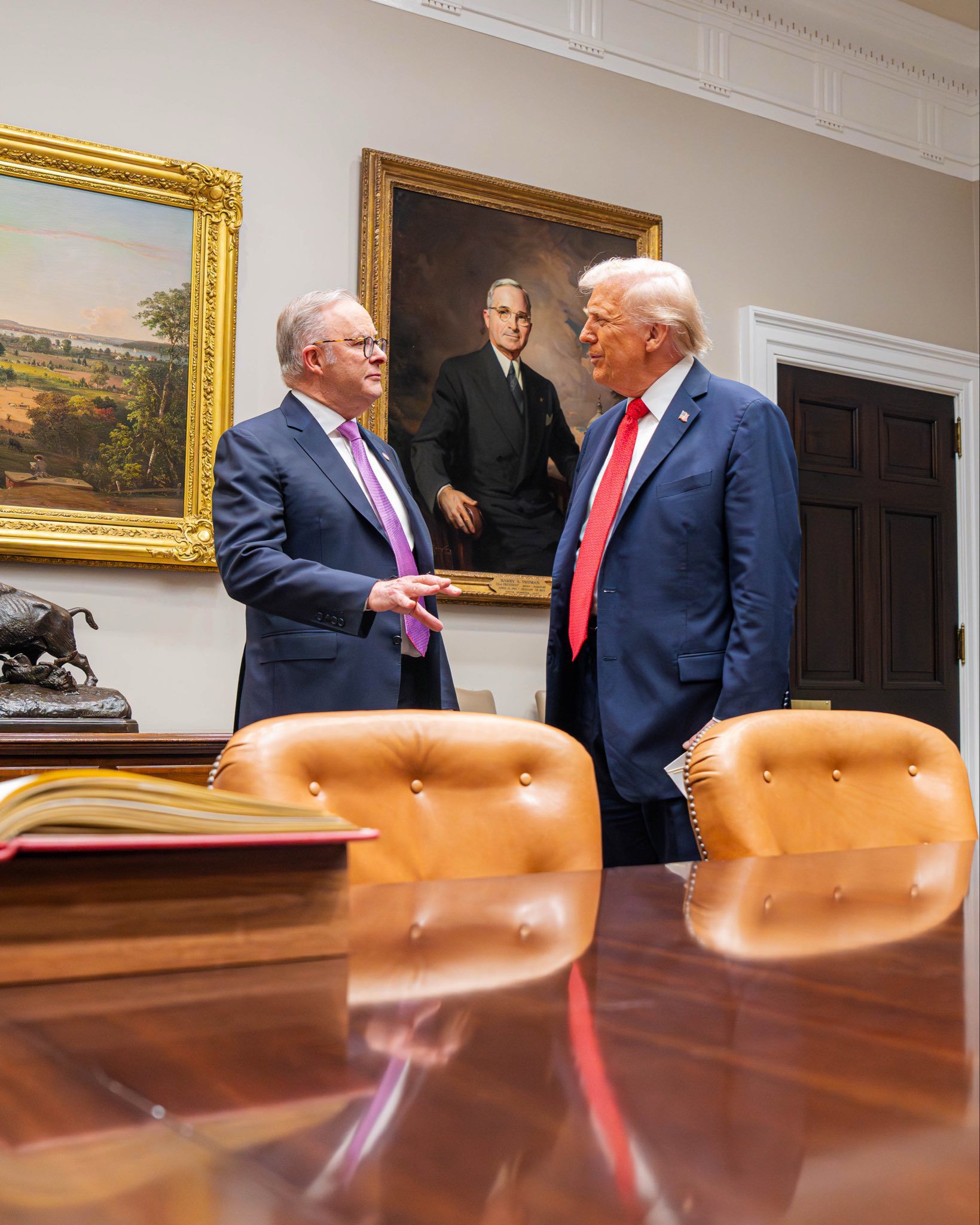 In a 35-minute sitdown, Trump referred to his visitor repeatedly as a friend and seemed to throw his support behind the AUKUS deal but declined to budge on Australia's tariff levels and took a swipe at former prime minister Kevin Rudd, who was also in the room.